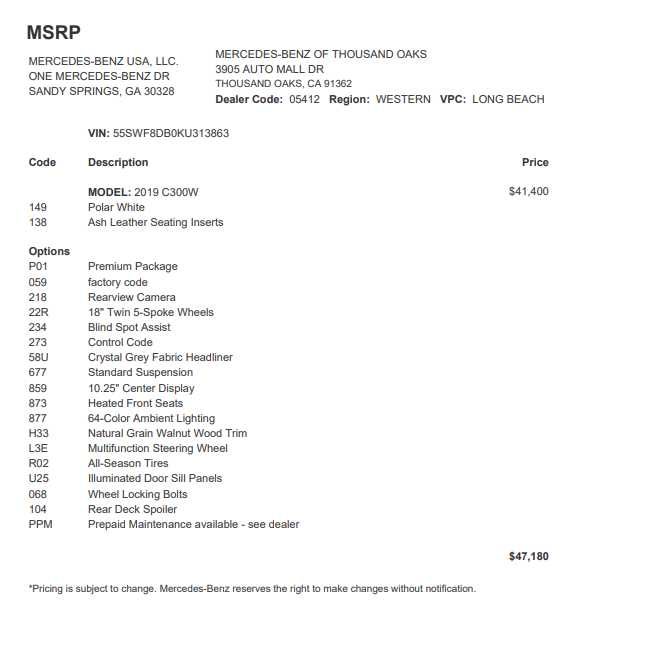- Vehicle Name: Mercedes-Benz C-Class
