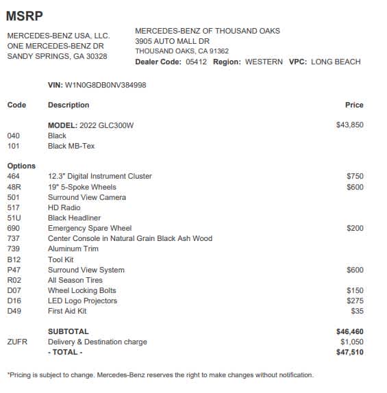 - Vehicle Name: Mercedes-Benz GLC