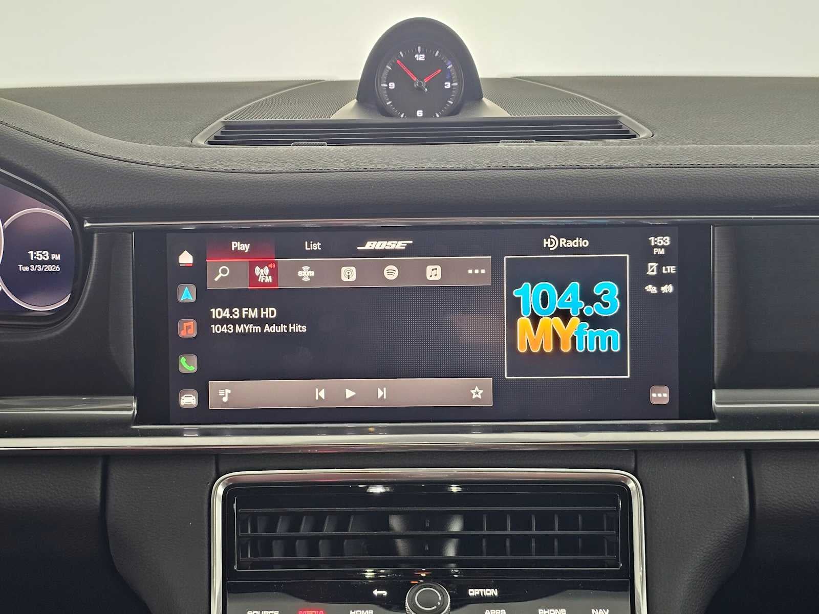 - Radio: Porsche Communication Management (PCM) -inc: online navigation module, mobile phone preparation, audio interfaces (Bluetooth®, USB, aux-in), Connect Plus, telephone module, wireless internet access, Porsche Car Connect (carfinder, remote vehicle status, remote services, Porsche Vehicle Tracking System (PVTS)), BOSE surround sound system w/14 speakers including subwoofer and a total output of 710 watts, smartphone compartment w/wireless charging, wireless Apple CarPlay, wireless Android Auto, SiriusXM w/3-month platinum plan trial subscription, HD Radio receiver and voice control