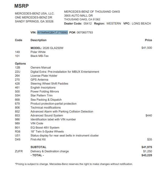 - Vehicle Name: Mercedes-Benz GLA