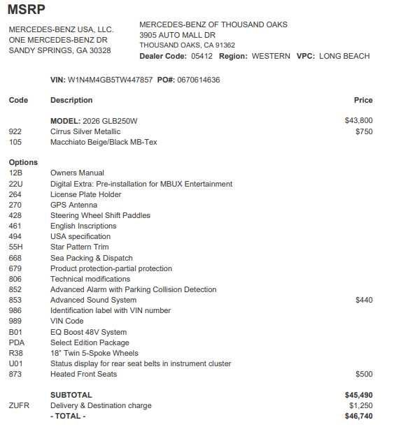 - Vehicle Name: Mercedes-Benz GLB